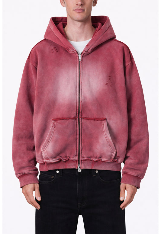 ROSE DISTRESSED ZIP HOODIE